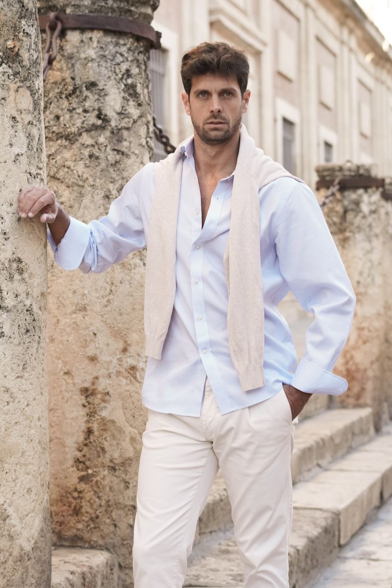 En Bespoke podrás encontrar tu camisa de vestirpara hombre perfecta, diseñada para satisfacer los estándares más exigentes de calidad y estilo. La colección incluye la clásica camisa blanca, imprescindible en cualquier guardarropa, así como opciones de rayas celeste y blanca que aportan dinamismo y personalidad. También destaca la camisa celeste lisa, ideal para quienes buscan un look elegante y moderno. Cada prenda está confeccionada con materiales de mucha calidad, garantizando comodidad y un ajuste favorecedor. En Bespoke, el cuidado por los detalles es una prioridad, desde los botones hasta los acabados interiores. La marca entiende que una buena camisa no solo debe verse bien, sino también sentirse bien durante todo el día. Por eso, ofrece opciones pensadas para hombres que valoran la excelencia en cada aspecto de su vestimenta.